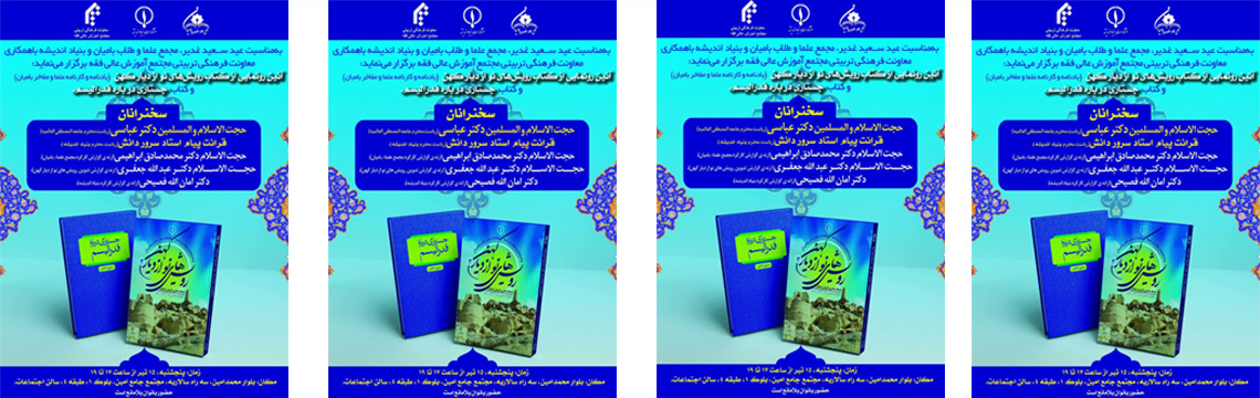 به مناسبت عید سعید غدیر خم؛ مجمع علماء و طلاب بامیان و همکاری معاونت فرهنگی تربیتی مجمتع آموزش عالی فقه برگزار می نماید: