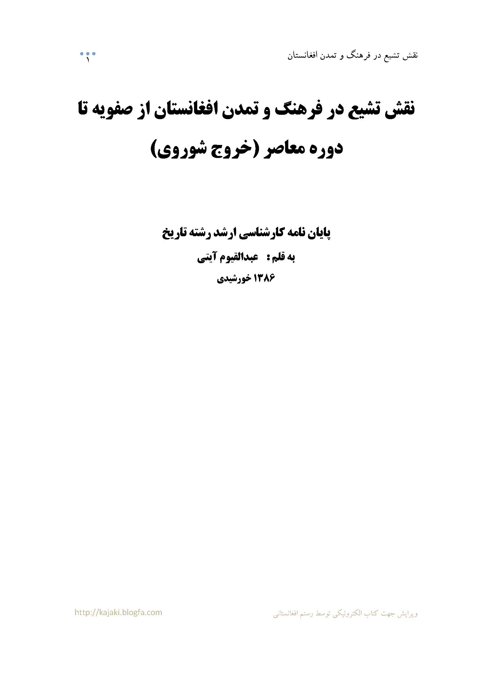 نقش تشیع در فرهنگ و تمدن افغانستان از صفویه تا دوره معاصر