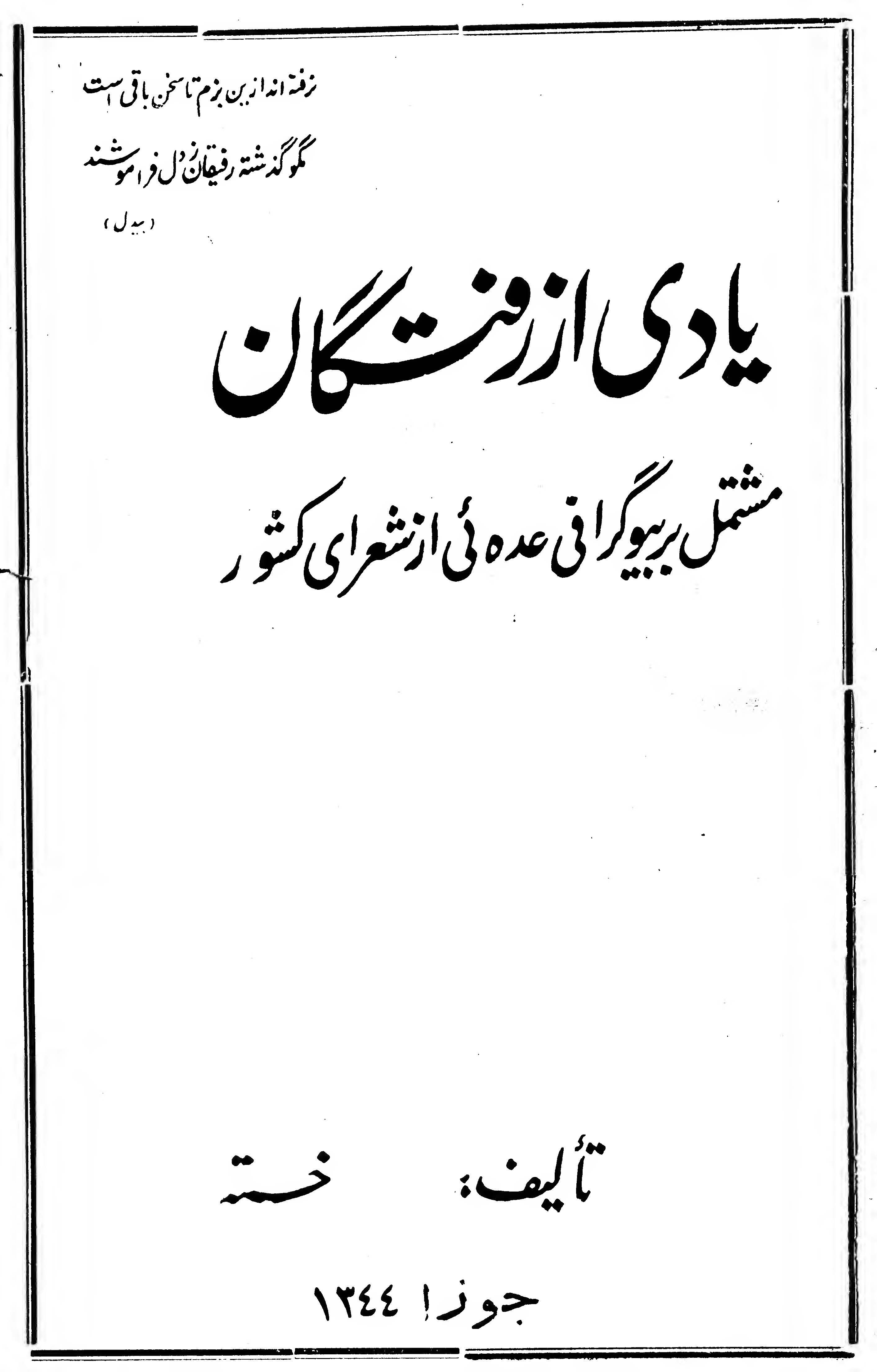 یادی از رفتگان، مشتمل بر بیوگرافی عدهای از شعرای کشور