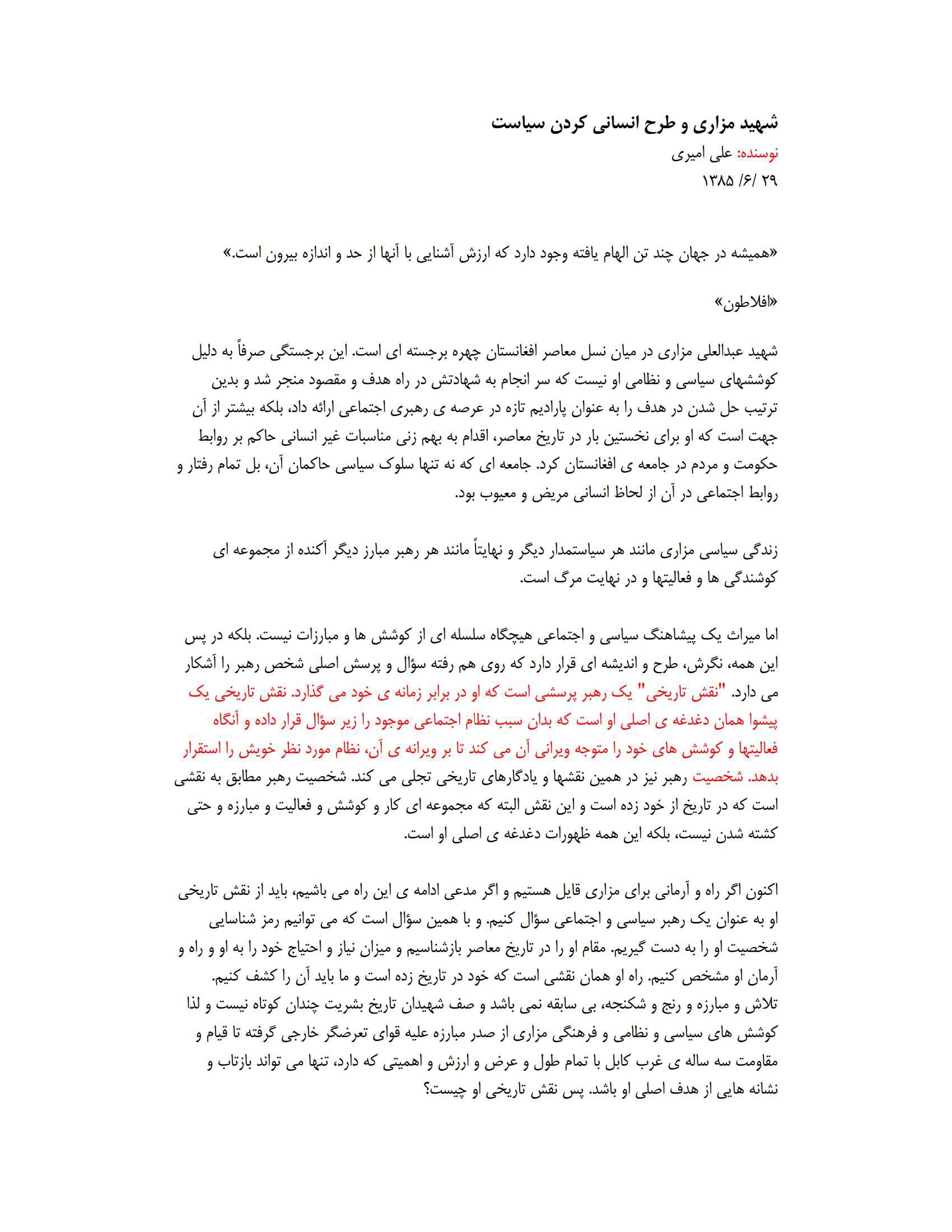 شهید وحدت ملی استاد عبدالعلی مزاری