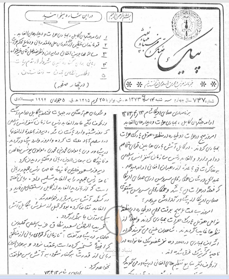 خبرنامه «پیک وحدت» حاوی رویدادها و تحولات سیاسی، فرهنگی و نظامی افغانستان است که در سال های 1369 تا 1373 از رسانه های بین المللی جهان پخش و نشر گردیده و توسط حزب وحدت اسلامی افغانستان جمع آوری شده و در اختیار عموم مردم قرار گرفته است. این تحولات و رویدادها بخشی از تاریخ سیاسی و نظامی افغانستان استش که توسط بنیاد اندیشه به صورت الکترونیکی آماده شده و در اختیار پژوهشگران و محققان گرامی قرار گرفته است.