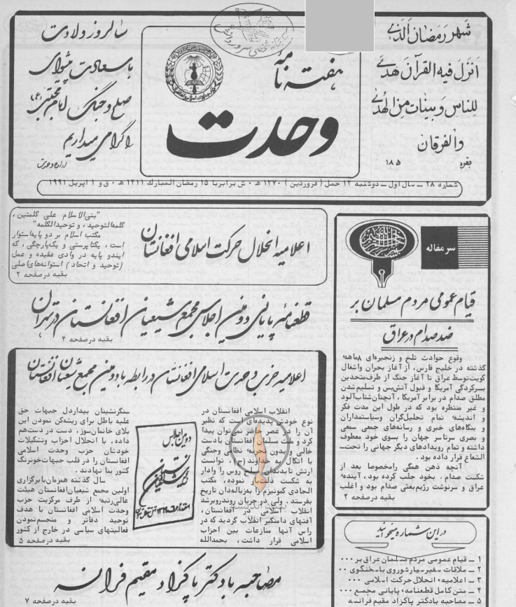 5- تحكيم وحدت اسلامي و ملي در افغانستان و جهان اسلام.