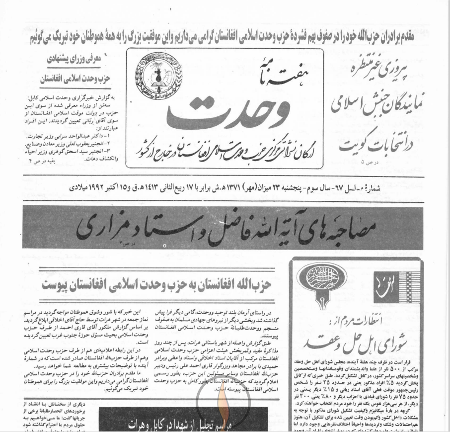 هفته نامه وحدت، جريده سياسي-خبري حزب وحدت اسلامي افغانستان كه در خارج از كشور و در جمهوري اسلامي ايران – شهر مقدس قم- زير نظر كميسيون فرهنگي حزب وحدت اسلامي افغانستان و با مدير مسئولي استاد دانش به نشر مي رسد.