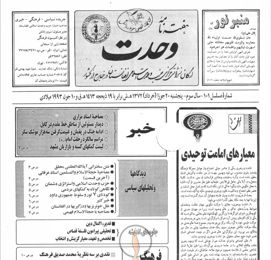 هفتهنامهی « وحدت»، سال سوم (1372) شماره 101