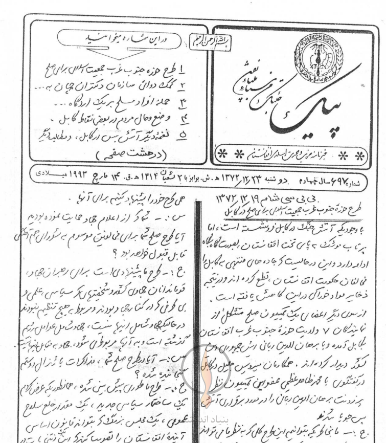 5- نغمۀ دیگر آتش بس در کابل، و مطالب دیگر