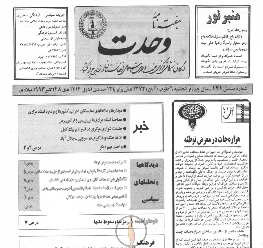هفتهنامهی « وحدت»، سال چهارم(1372) شماره 121