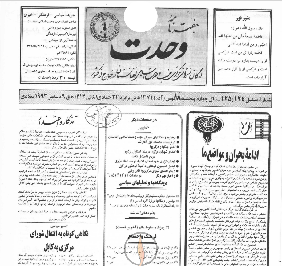 هفتهنامهی « وحدت»، سال چهارم(1372) شماره 124-125