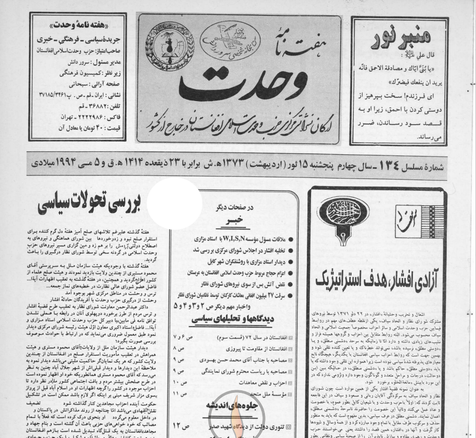 هفته نامه وحدت شماره 134
