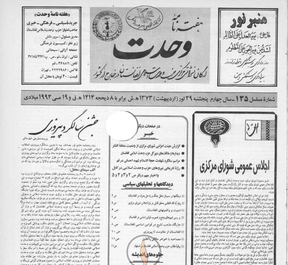 هفتهنامهی « وحدت»، سال چهارم(1373) شماره 135