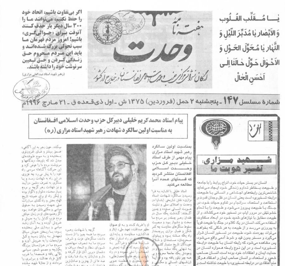 هفتهنامهی « وحدت»، سال ششم(1375) شماره 147