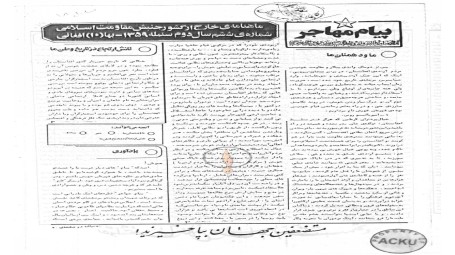 بخش کتابخانه با صدها اثر در باره افغانستان و سایر موضوعات عمومی و تخصصی، بخش نشریات بنیاد، انتشارات با معرفی آثار چاپی از سوی بنیاد اندیشه، شهید مزاری، همایشها، شخصیتهای افغانستان و رویدادها است.