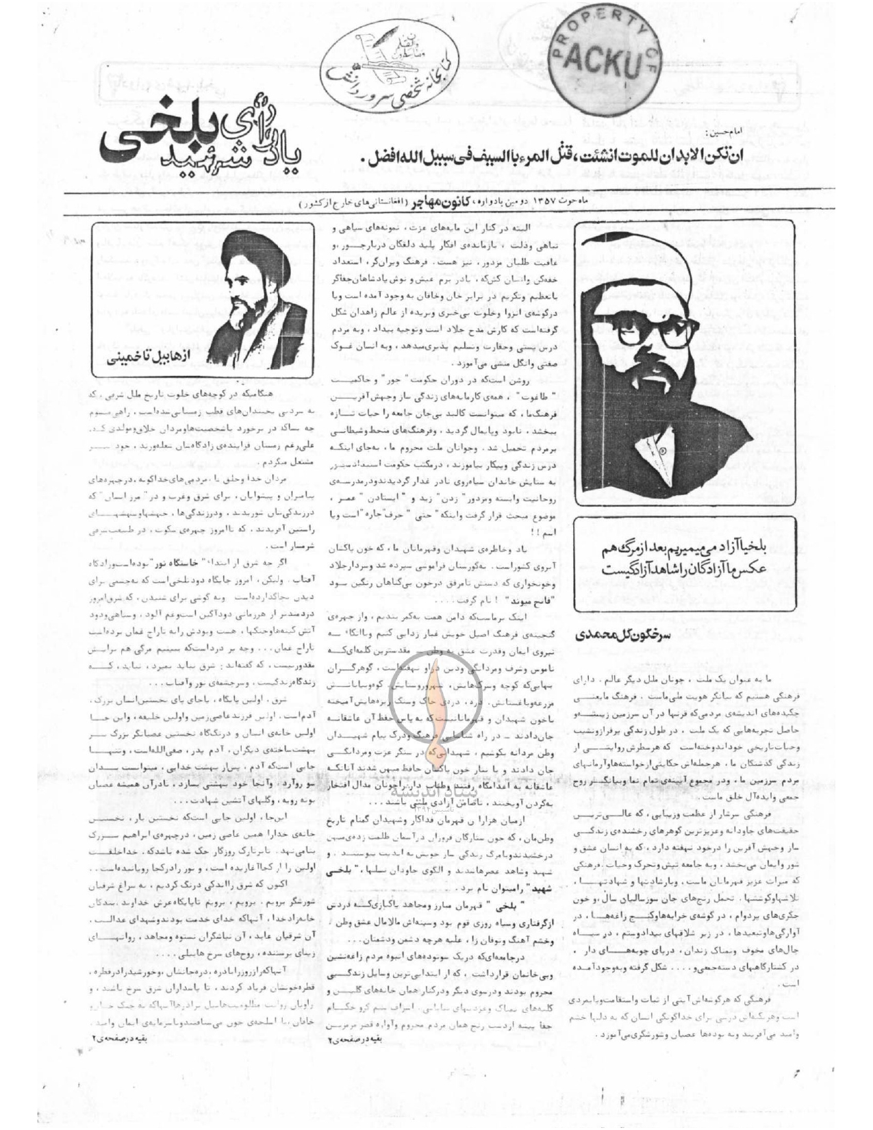 پیام مهاجر، یادواره شهید بلخی