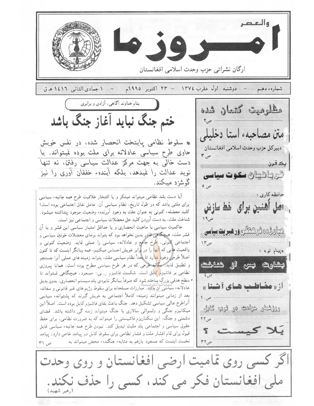 امروز ما شماره ۱۰