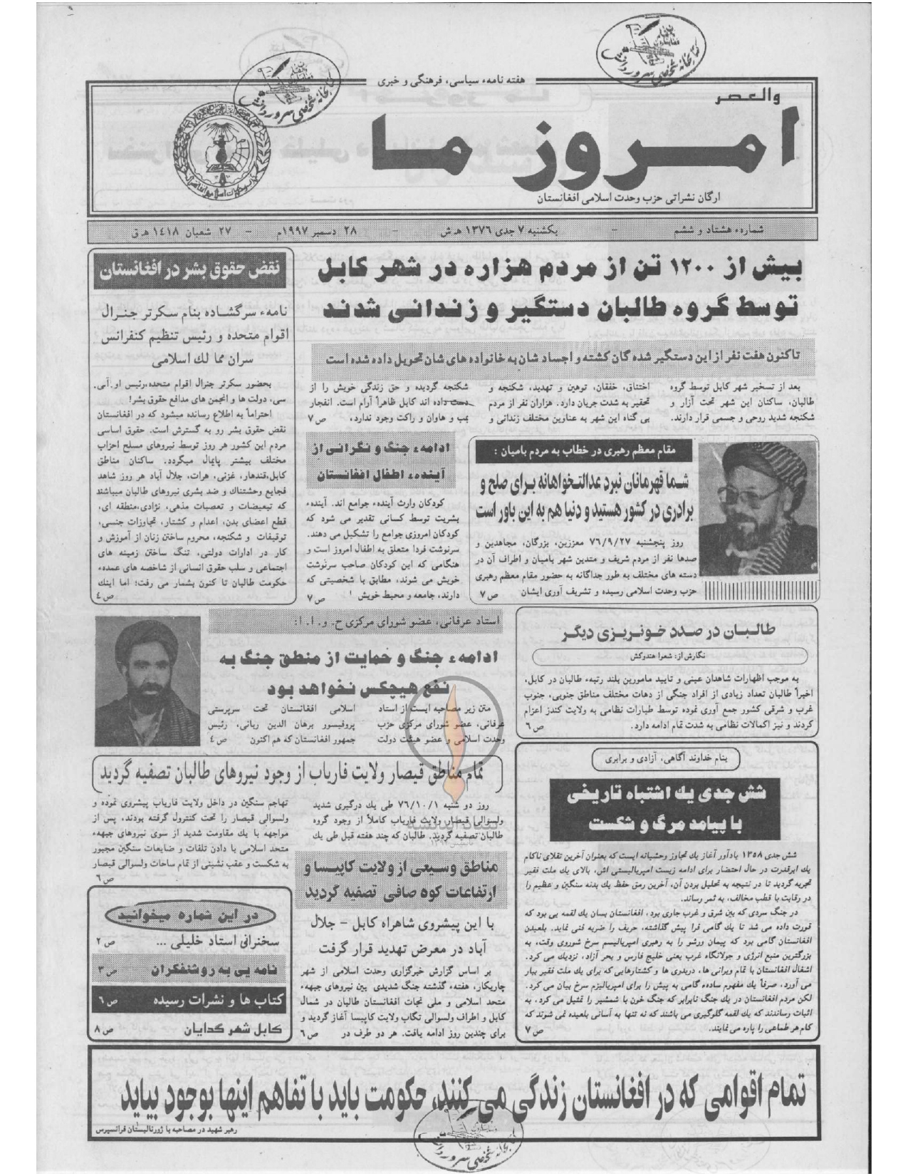 شهید وحدت ملی عبدالعلی مزاری