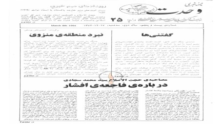 نامه خبری وحدت، شماره ۲۵