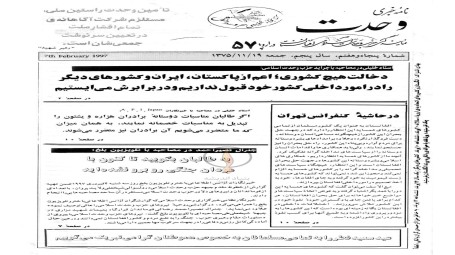 نامه خبری وحدت، شماره ۵۷