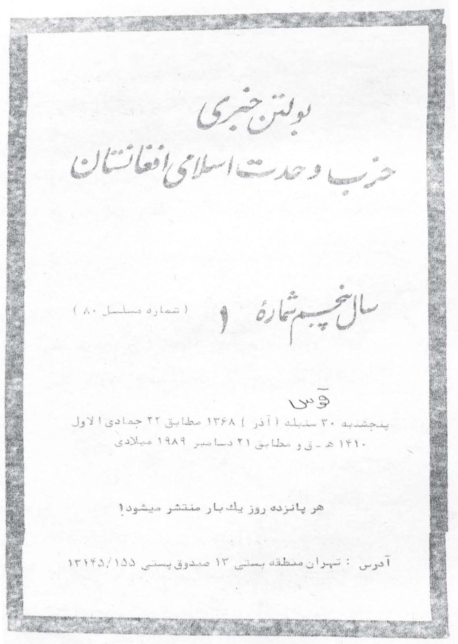 بولتن خبری حزب وحدت اسلامی افغانستان شماره 1