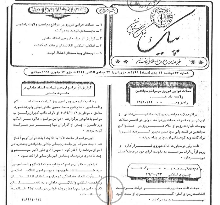 1-حملات هوایی شوروی بر مواضع مجاهدین ولایت بادغیس