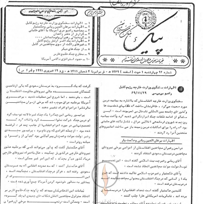 2- اظهارات برهان الدین ربانی و حکمت یار
