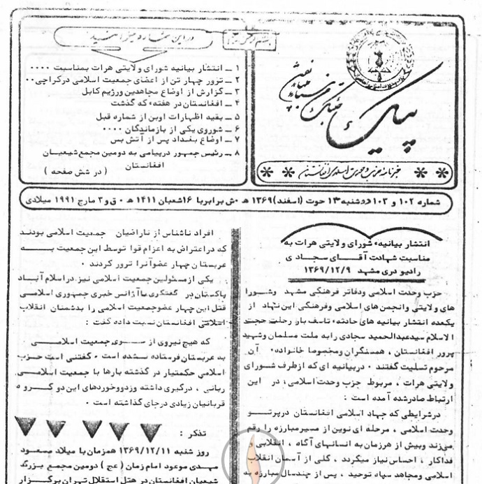 1- انتشار بیانیه شورای ولایتی هرات به مناسبت ...