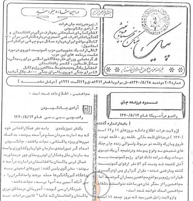 7- تشکیل یک گروه جدید توسط مخالفین رژیم کابل