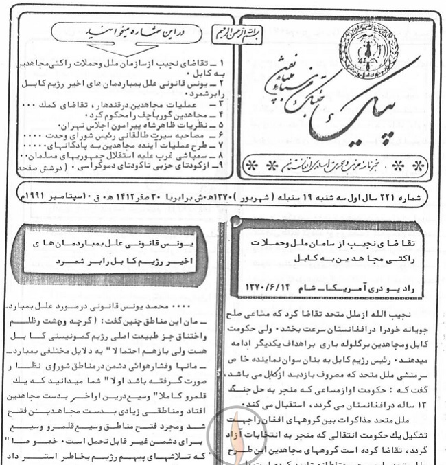 1- تقاضای نجیب از سازمان ملل و حملات راکتی مجاههدین به کابل