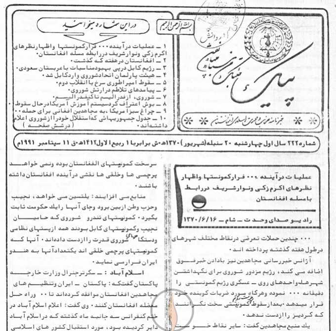 1- عملیات درآینده ... فرار کمونیستها و اظهار نظرهای اکرم زکی و نوار شریف در رابطه با مسئله افغانستان
