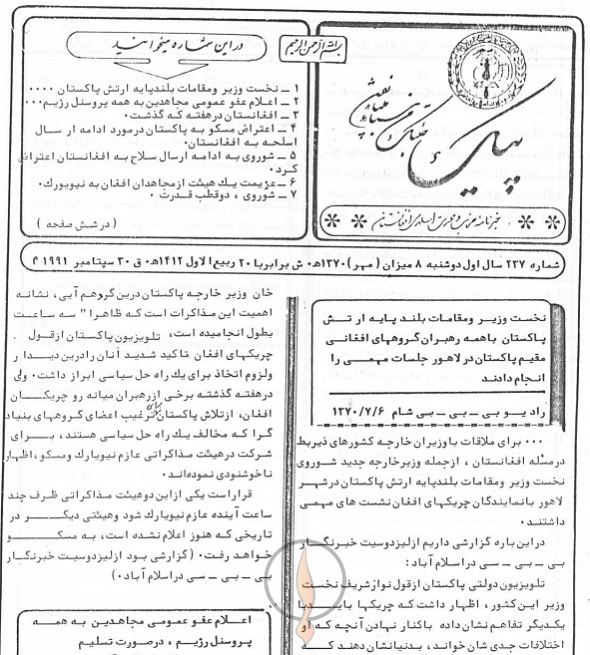 6- دو تن از رهبران مجاهدان افغانی اعلام آتش بس یک جانبه را از سوی نجیب الله رد کردند