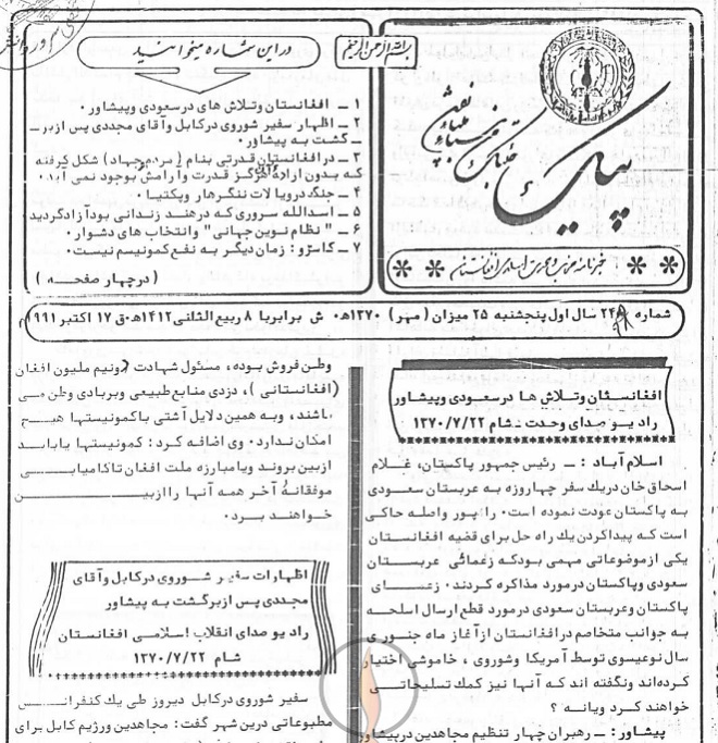 2- اظهار سفیر شوروی در کابل و آقای مجددی پس از برگشت به پیشاور