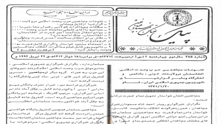 خبرنامه «پیک وحدت» حاوی رویدادها و تحولات سیاسی، فرهنگی و نظامی افغانستان است که در سال های 1369 تا 1373 از رسانه های بین المللی جهان پخش و نشر گردیده و توسط حزب وحدت اسلامی افغانستان جمع آوری شده و در اختیار عموم مردم قرار گرفته است. این تحولات و رویدادها بخشی از تاریخ سیاسی و نظامی افغانستان استش که توسط بنیاد اندیشه به صورت الکترونیکی آماده شده و در اختیار پژوهشگران و محققان گرامی قرار گرفته است. در این شماره می خوانید 1- تبصره پیرامون مسایل افغانستان و آینده آن. 2- اظهارات فرماندار کابل. 3- دیدار رهبران مجاهدین مقیم پیشاور با عدهء از مقامات پاکستانی از جمله رئیس اداره استخبارات آن کشور. 4- عملیات مجاهدین در مناطق جنوبی سالنگ و مصاحبه با ظاهرشاه (پادشاه افغانستان) 5- مصاحبه سید شاه ناصر نادری رهبر فرقه اسماعیلیه . 6- حکمتیار با شورای جایگزین نجیب مخالفت کرد. 7- زمان و مکان تشکیل اولین اجلاس شورای جایگزین رژیم کابل اعلام شد. 8- کارنامه سیاه رژیم نجیب بسته می شود.