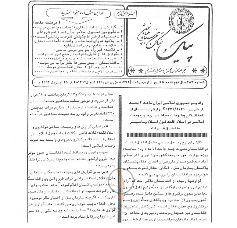 4- ابلاغیه شورای قوماندانان و اتحاد علماء افغانستان.