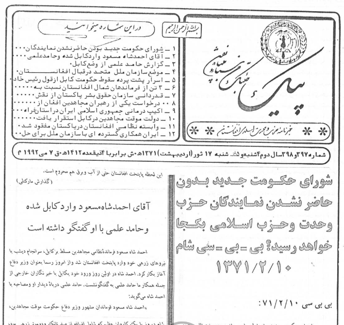 10- دولت موقت مجاهدین در کابل استقرار یافت .