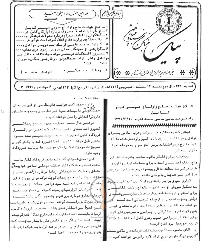 1- ارتش هیئت صلح و اوضاع عمومی شهر کابل