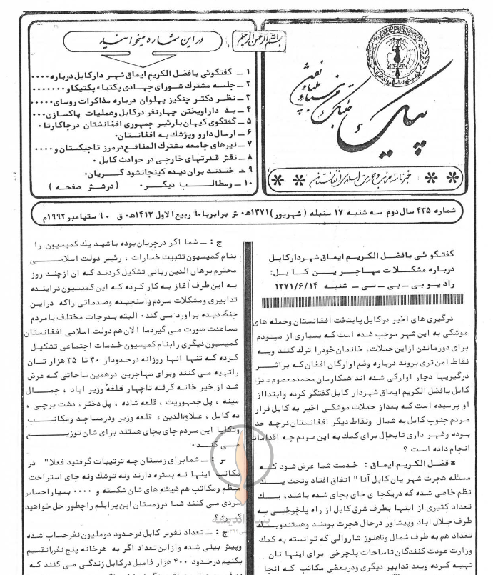 1- گفتگوئی با فضل الکریم ایماق شهردار کابل درباره