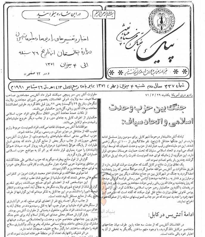 1- اخبار و تفسیرهای رادیو ها و مطبوعات ایران درباره افغانستان از تاریخ ۲۶ سنبله الی ۴میزان ۱۳۷۱