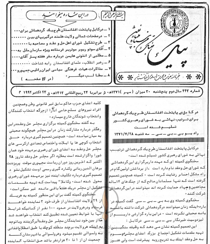 خبرنامه «پیک وحدت» سال سوم (1371) شماره 443
