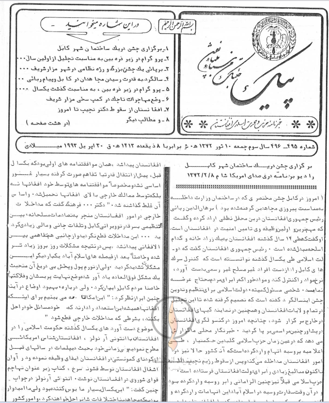 4- سالگرد به قدرت رسیدن مجاهدان د رکابل و پیام ربانی