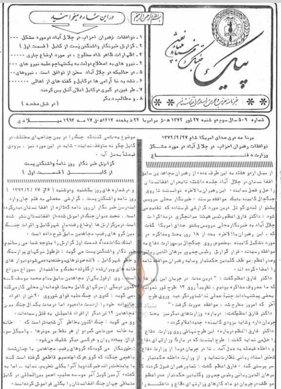 1- توافقات رهبران احزاب در جلال آباد در مورد مشکل