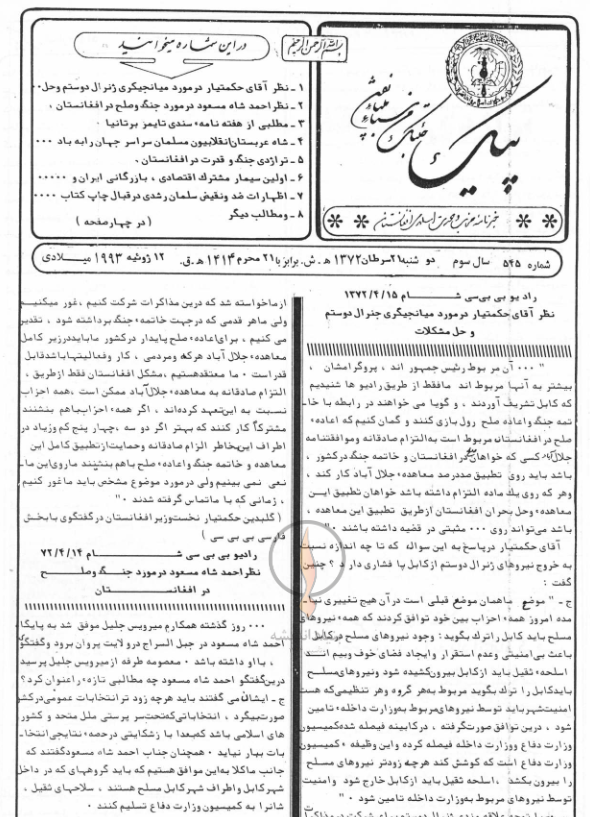 2- نظر احمدشاه مسعود در مورد جنگ و صلح در افغانستان