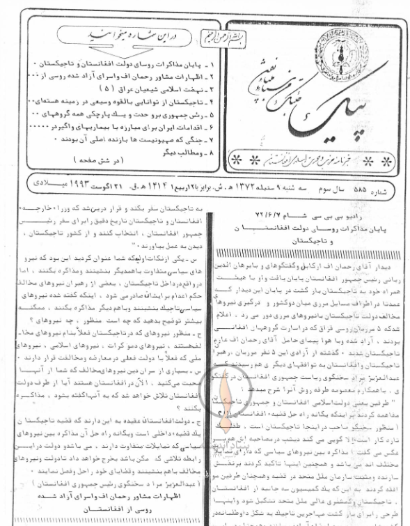1- پایان مذاکرات روسای دولت افغانستان و تاجیکستان