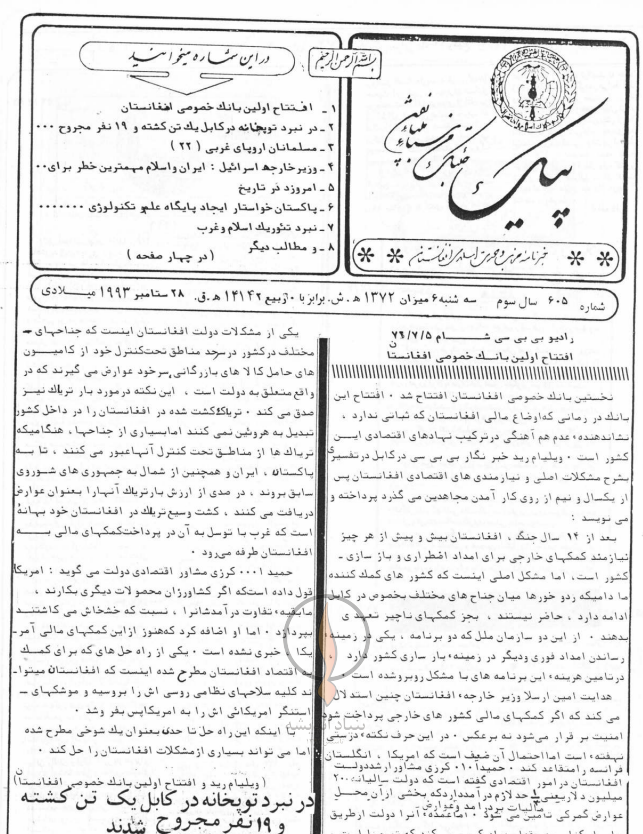 1- افتتاح اولین بانک خصوصی افغانستان