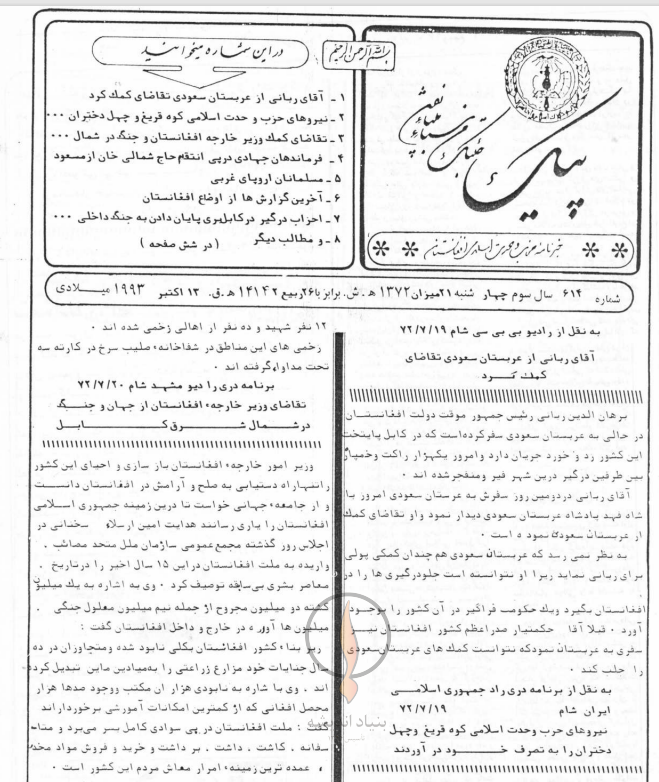 1- آقای ربانی از عربستان سعودی تقاضای کمک کرد