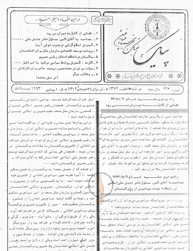 خبرنامه «پیک وحدت» حاوی رویدادها و تحولات سیاسی، فرهنگی و نظامی افغانستان است که در سال های 1369 تا 1373 از رسانه های بین المللی جهان پخش و نشر گردیده و توسط حزب وحدت اسلامی افغانستان جمع آوری شده و در اختیار عموم مردم قرار گرفته است. این تحولات و رویدادها بخشی از تاریخ سیاسی و نظامی افغانستان استش که توسط بنیاد اندیشه به صورت الکترونیکی آماده شده و در اختیار پژوهشگران و محققان گرامی قرار گرفته است.