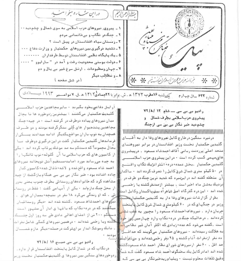 4- تشدید درگیری بین نیروهای حکمتیار و وزارت دفاع