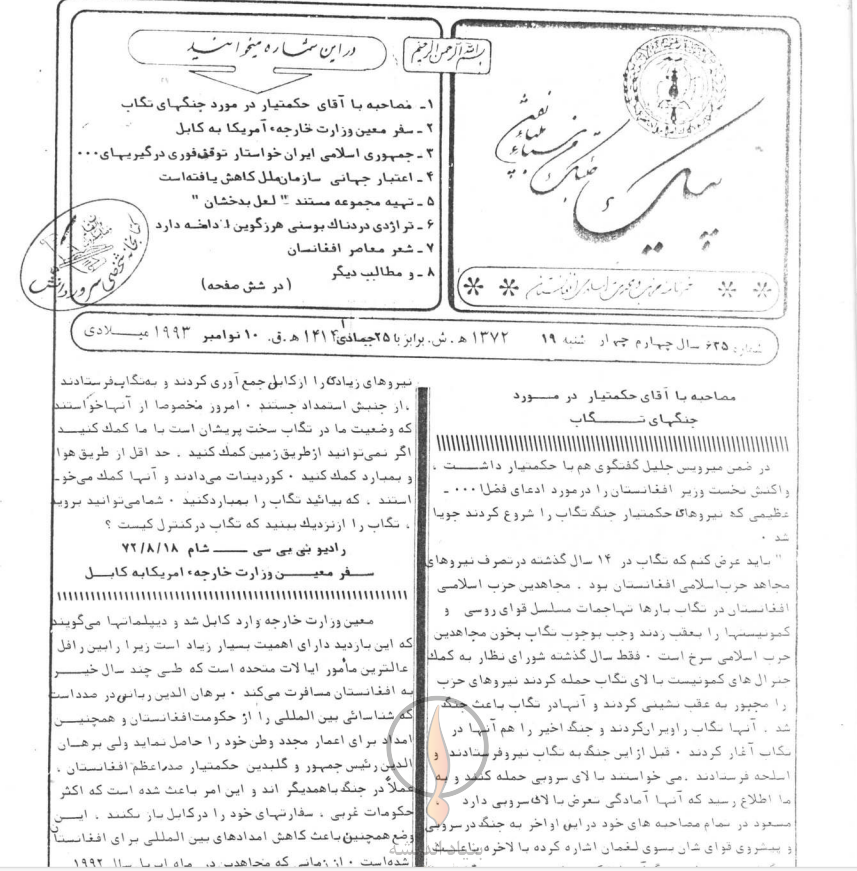 1- مصاحبه با آقای حکمتیار در مورد جنگهای تگاب
