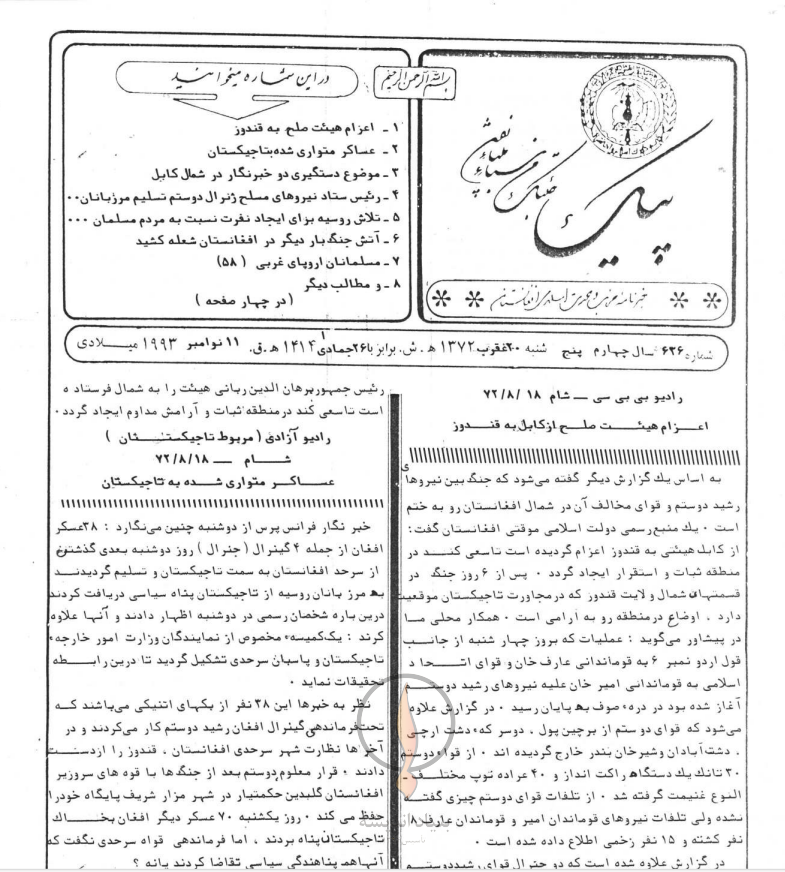 خبرنامه «پیک وحدت» حاوی رویدادها و تحولات سیاسی، فرهنگی و نظامی افغانستان است که در سال های 1369 تا 1373 از رسانه های بین المللی جهان پخش و نشر گردیده و توسط حزب وحدت اسلامی افغانستان جمع آوری شده و در اختیار عموم مردم قرار گرفته است. این تحولات و رویدادها بخشی از تاریخ سیاسی و نظامی افغانستان استش که توسط بنیاد اندیشه به صورت الکترونیکی آماده شده و در اختیار پژوهشگران و محققان گرامی قرار گرفته است.