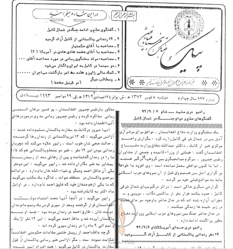 1- گفتگوی صلح و ادامه جنگ در شمال کابل