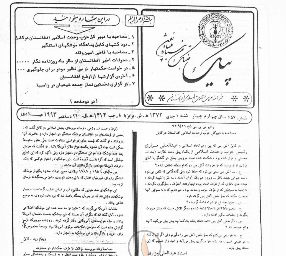 1- مصاحبه با دبیر کل حزب وحدت اسلامی افغانستان در کابل