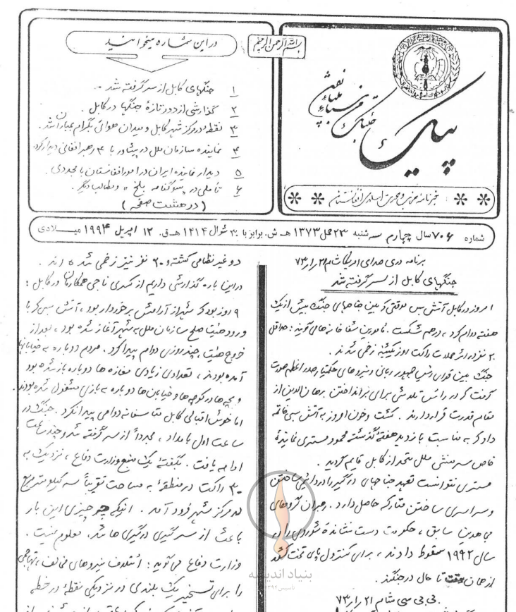 1- جنگهای کابل از سر گرفته شد
