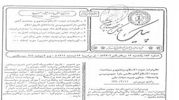 خبرنامه «پیک وحدت» سال دوم (1370) شماره 182